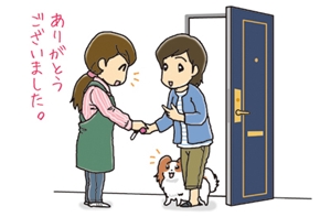 ご希望の日時に、あらためてお伺いし、基本的には、鍵を手渡しの上ご返却させていただきます。